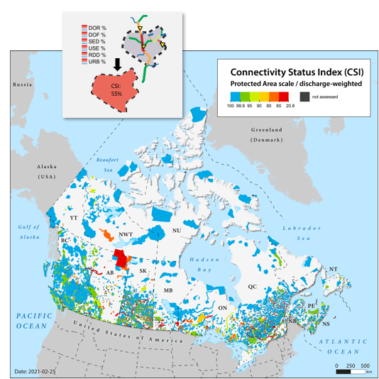 <figure><img src="https://2747381194-files.gitbook.io/~/files/v0/b/gitbook-x-prod.appspot.com/o/spaces%2F-McjjKchgxjgJZpS7Jbk%2Fuploads%2FCIIGWuXhT0yz2Ls3MIxK%2Fimage.png?alt=media&#x26;token=c8022887-49d2-408c-a553-690e755d3a9d" alt=""><figcaption><p>Using the CSI to assess the connectivity status of protected areas in Canada</p></figcaption></figure>