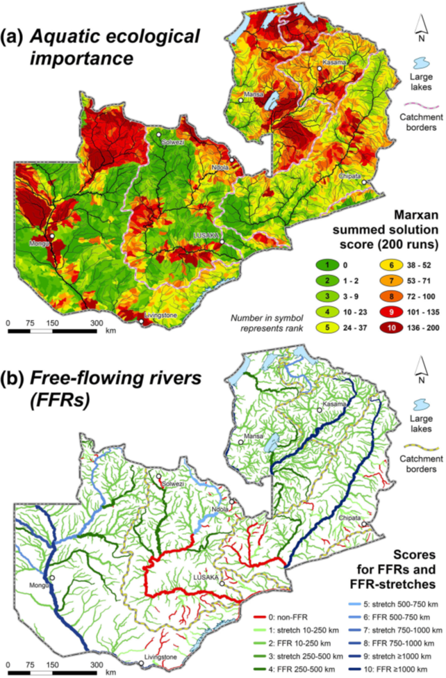 In this project, the free-flowing status was used as one of several information layers to prioritize areas for the protection of water resources. For more information, see Lehner et al. 2021 ([DOI: 10.1002/aqc.3606](https://doi.org/10.1002/aqc.3606))