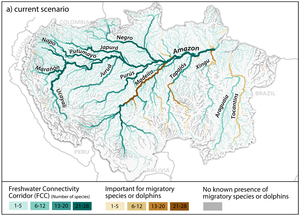 <figure><img src="https://2747381194-files.gitbook.io/~/files/v0/b/gitbook-x-prod.appspot.com/o/spaces%2F-McjjKchgxjgJZpS7Jbk%2Fuploads%2FrlGTmazp02XtpExgW9AH%2Fimage.png?alt=media&#x26;token=737c0d10-c6e8-4170-897c-78e7f7bc8b8a" alt=""><figcaption><p>Freshwater connectivity corridors in the Amazon River basin</p></figcaption></figure>